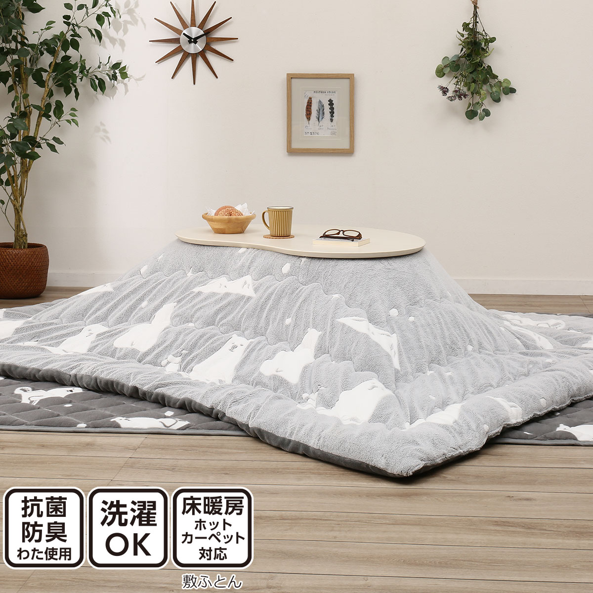 こたつ布団については、掛け布団と敷き布団が揃っている「長方形(ポーラベアQ チョウ」のセットを購入。